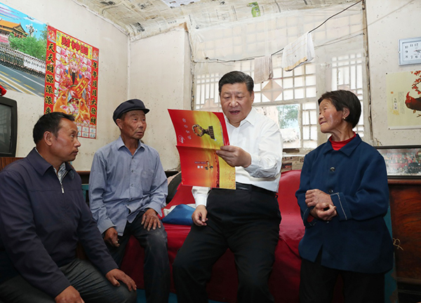 这是6月21日下午,习近平到忻州市岢岚县赵家洼村特困户王三女家中看望。(新华社记者 庞兴雷 摄)