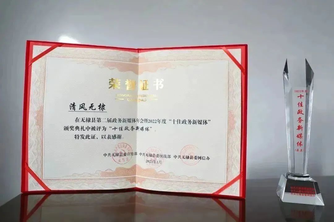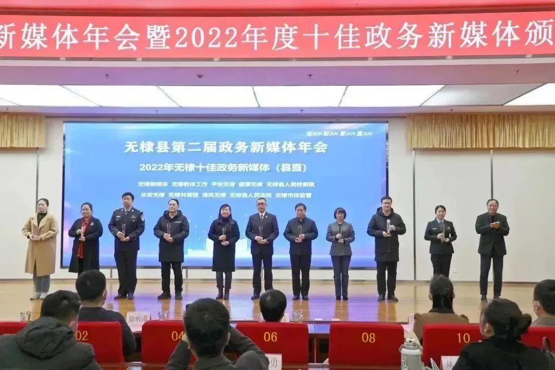 1月17日,无棣县第二届政务新媒体年会暨2022年度十佳政务新媒体颁奖典礼举行,“清风无棣”喜获无棣县“十佳政务新媒体”称号。