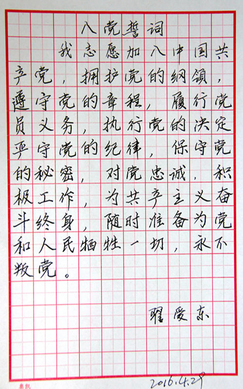 为进一步加强纪检监察干部党性锻炼,增强党员干部党章党规意识,打牢“两学一做”专题教育活动基础,自4月28日开始,县纪委监察局机关开展“手抄党章100天”活动,营造了“争抄党章、真学党规”的良好学习氛围。