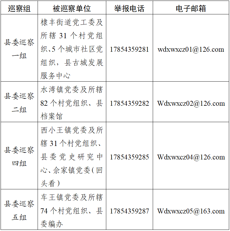 根据县委统一部署,截止9月22日,十四届无棣县委第五轮巡察4个巡察组陆续完成巡察进驻工作,开始对棣丰街道党工委及所辖36个村(社区)党组织、车王镇党委及所辖74个村党组织、西小王镇党委及所辖31个村党组织、水湾镇党委及所辖82个村党组织、县委编办、县委党史研究中心、县档案馆、县古城发展服务中心党组开展常规巡察。同时对佘家镇党委巡察整改工作情况进行“回头看”。